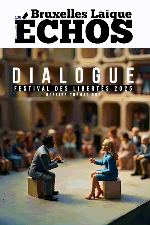 Ce numéro du Bruxelles Laïque Echos présente la thématique du Festival des Libertés 2025. Il explore les multiples visages du dialogue : politique, diplomatique, social, culturel, féministe, miliant. Il interroge ses promesses, ses pièges, ses usages et ses détournements. Il donne la parole à celles et ceux qui, chaque jour, inventent des espaces de parole libre, de confrontation constructive, de reconnaissance mutuelle.